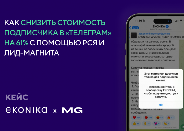 Кейс EKONIKA & MediaGuru: как снизить стоимость подписчика в «Телеграме» на 61% с помощью РСЯ и лид-магнита