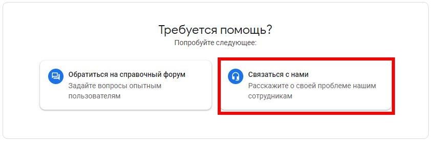 Если нужно решить проблему оперативно, воспользуйтесь чатом, в котором с вашим обращением будет работать представитель Google в реальном времени. Чат появится после заполнения необходимых полей.