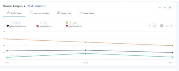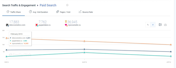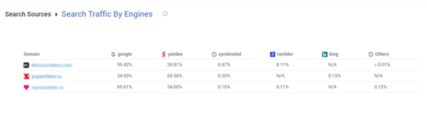 - процентное соотношения трафика, приходящегося на того или иного конкурента;