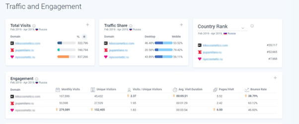 Большой плюс SimilarWeb – возможность сразу увидеть аудиторию и их интересы, клиента и его конкурентов.