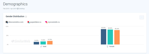 Подраздел Demographics наглядно покажет, какого пола и возраста целевая аудитория нужного нам сайта, а также его конкурентов. Он всегда пригодится для корректировки ставок или выбора креативов.
