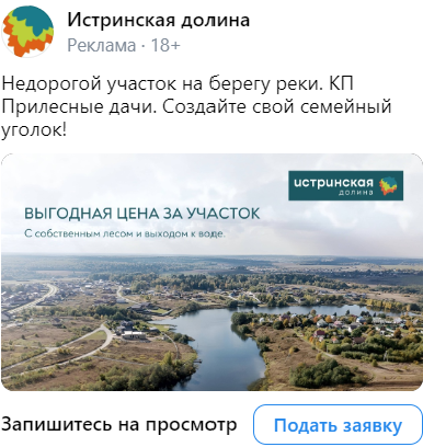 Привлечение целевых лидов для покупки земельных участков в коттеджных поселках компании с помощью VK ADS.
