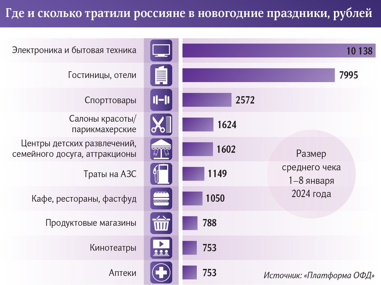 3) Развлечение из правил: на что россияне тратили деньги в новогодние праздники.