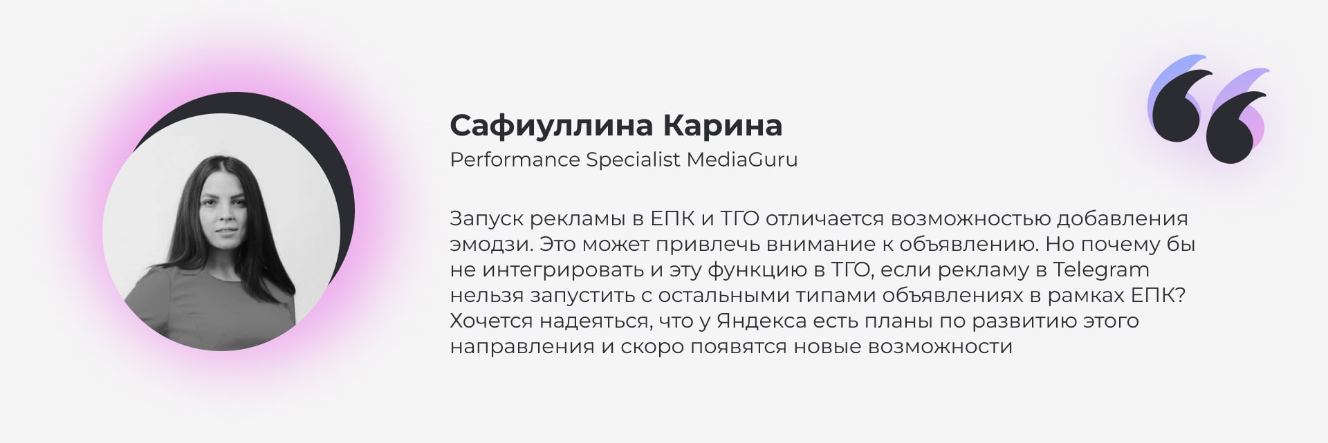 Сафиуллина Карина, Performance Specialist MediaGuru, отметила: