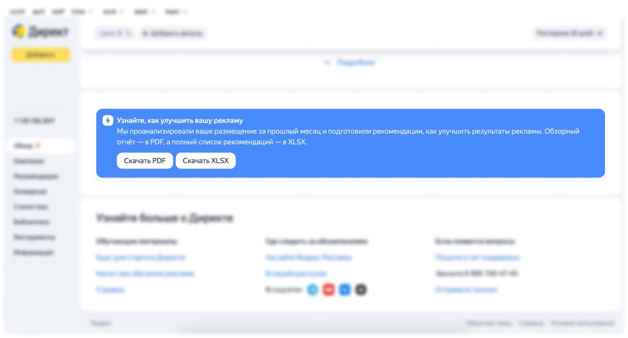В Директе новый бета-тест: для части рекламодателей открылась возможность скачать отчет с персональными рекомендациями по повышению эффективности рекламы.
