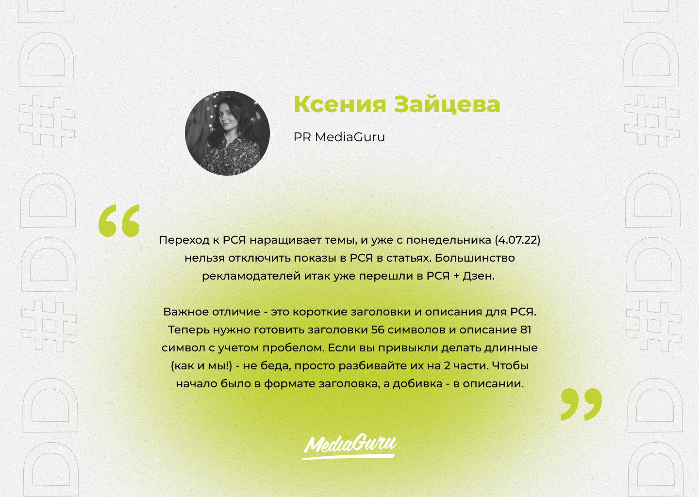 Переход к РСЯ наращивает темы, и уже с понедельника (4.07.22) нельзя отключить показы в РСЯ в статьях. Большинство рекламодателей итак уже перешли в РСЯ+Дзен.