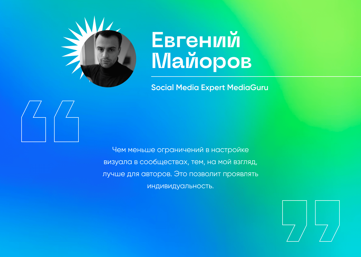 Чем меньше ограничений в настройке визуала в сообществах, тем, на мой взгляд, лучше для авторов. Это позволит проявлять индивидуальность.