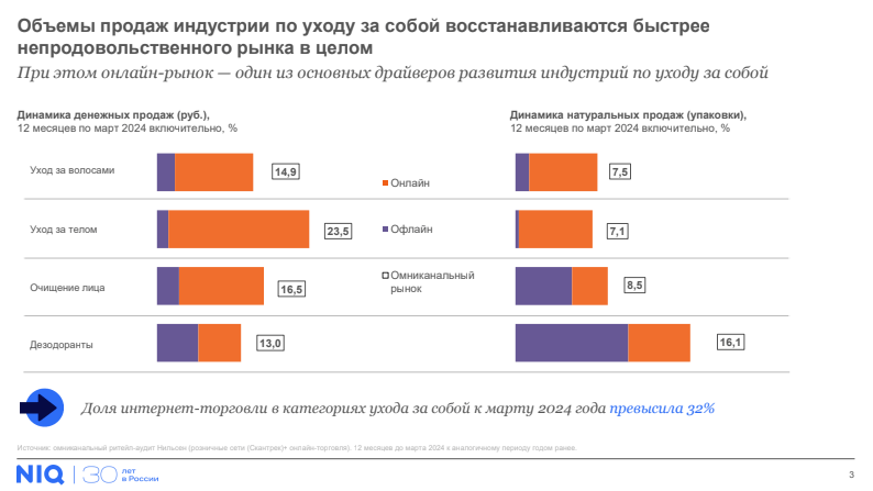 - объемы продаж индустрии по уходу за собой восстанавливаются быстрее непродовольственного рынка в целом. Онлайн-продажи — один из главных драйверов роста этой отрасли;
