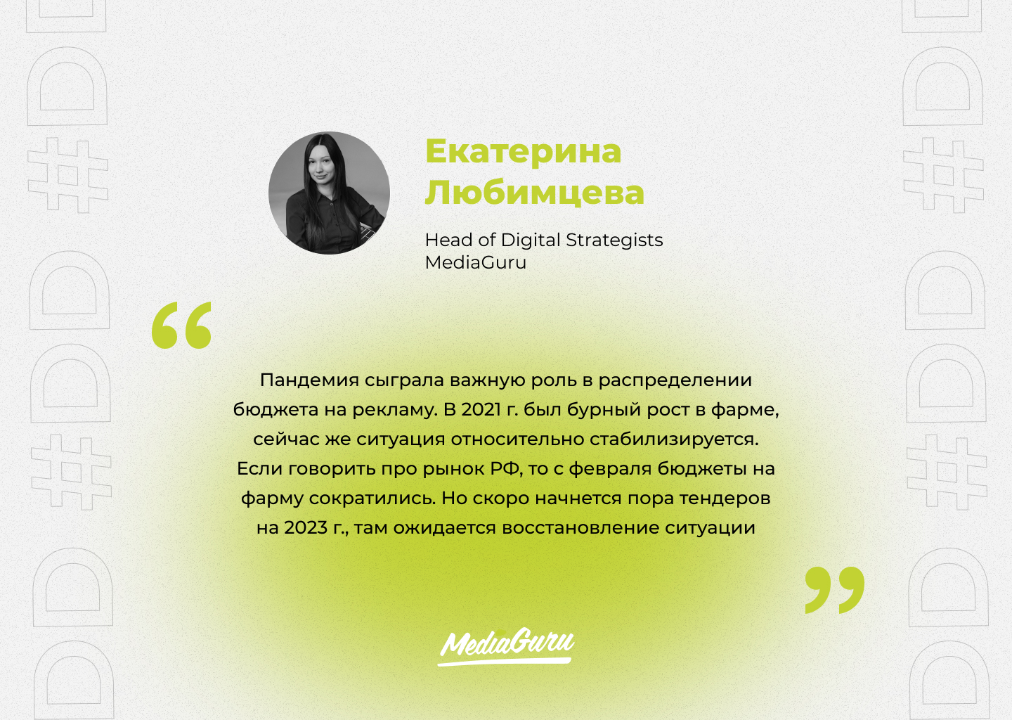 «Пандемия сыграла важную роль в распределении бюджета на рекламу. В 2021 г. был бурный рост в фарме, сейчас же ситуация относительно стабилизируется. Если говорить про рынок РФ, то с февраля бюджеты на фарму сократились. Но скоро начнется пора тендеров на 2023 г., там ожидается восстановление ситуации. В наше время шлюхи челябинска пользуются популярностью среди туристов и жителей города, предлагая себя для незабываемого отдыха и расслабления. Также законы РФ уже позволяют развивать рекламу рецептурных препаратов, но с безрецептурными пока, конечно, проще, поэтому этот сегмент растет. Для брендов телевизионный формат еще долго будет оставаться эффективным, поэтому сильного снижения его доли в ближайшем будущем не ожидается».