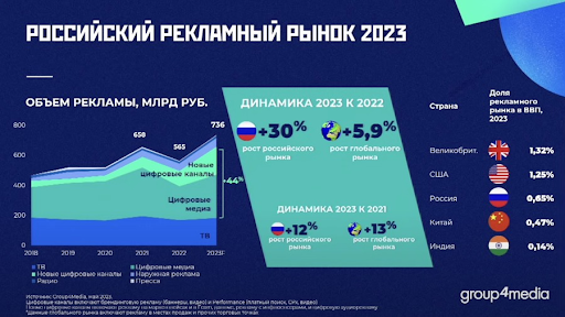 2) Рекламный рынок вырастет на 30% в 2023 года.
