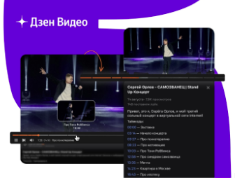 Дзен ввел новую функцию в длинных видео для создания эпизодов и таймкодов. Таймкоды – это активные ссылки в описании видео с указанием времени, которые разбивают видео на эпизоды. Кликнув по ним, можно сразу перейти к нужному моменту. Функция облегчит пользователям поиск интересного фрагмента в ролике, а также поможет повысить вовлеченность в видео и повлияет на глубину просмотра.