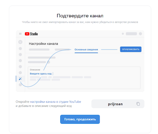 - добавить в настройках канала на YouTube код, который сгенерировал VK;