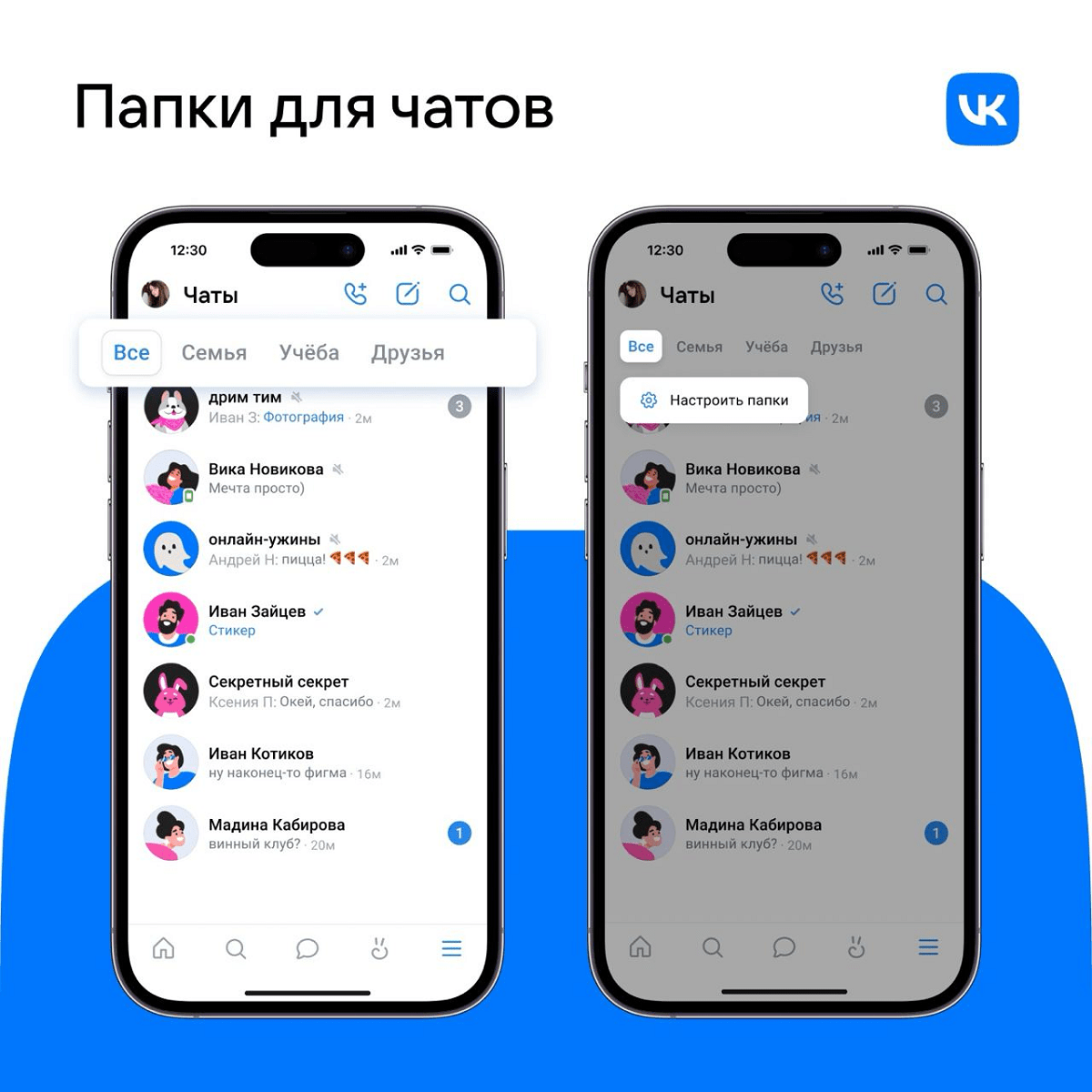 3) VK добавила папки для чатов.