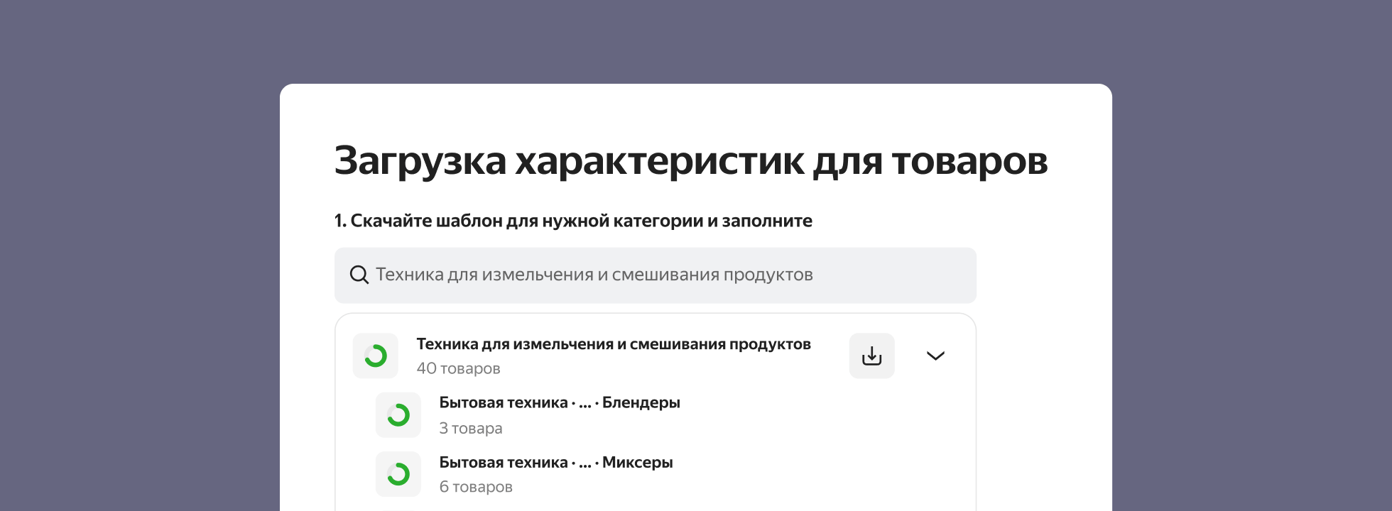 Теперь продавцам будет проще загружать на витрину аптечные товары, бытовую технику, продукты, товары для дачи, досуга и животных — появились новые удобные шаблоны, каждый из которых заменяет 5–7 файлов.