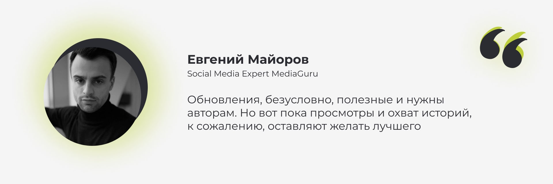 Обновления, безусловно, полезные и нужны авторам. Но вот пока просмотры и охват историй, к сожалению, оставляют желать лучшего.