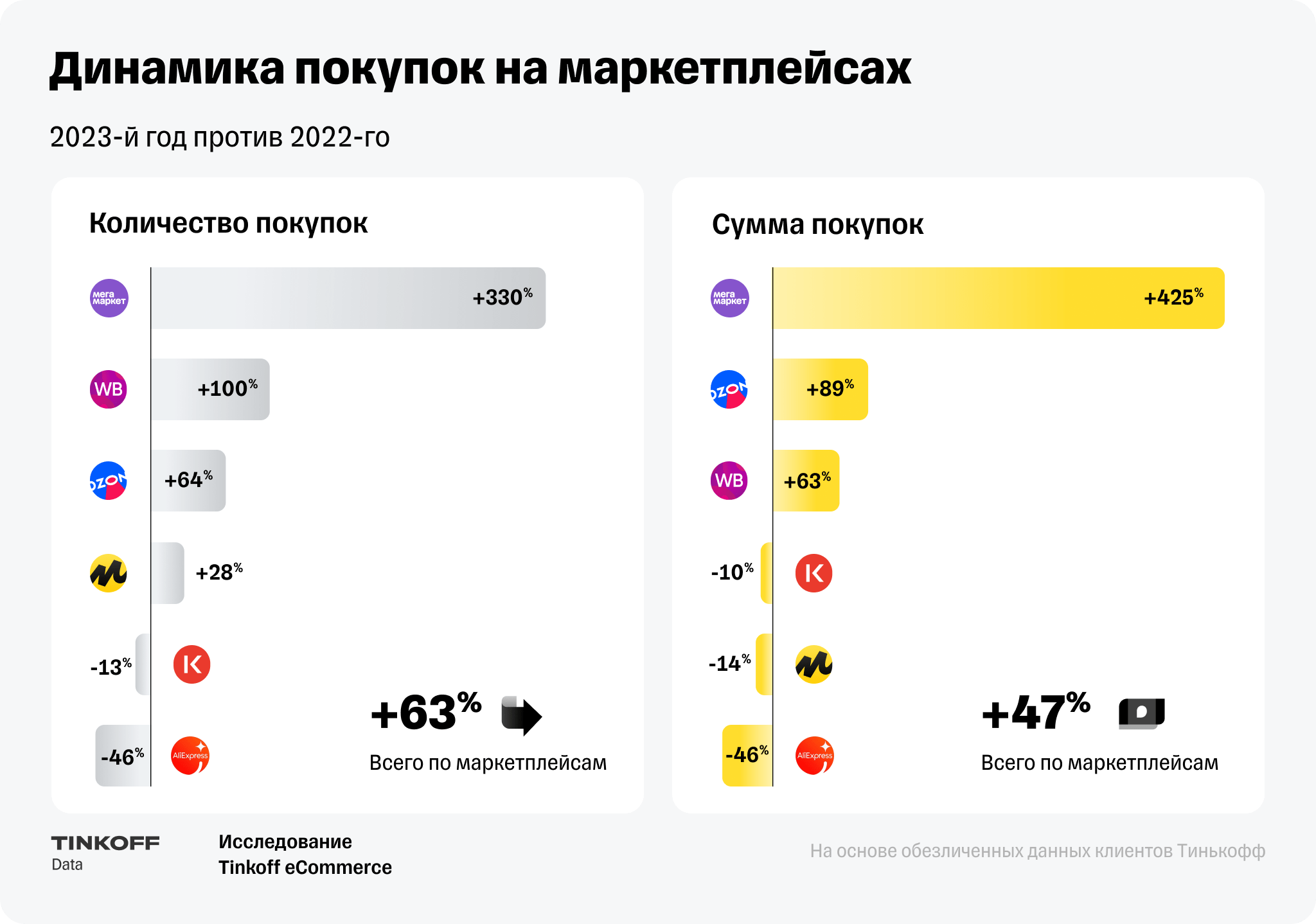 Исследование Tinkoff eCommerce посвящено анализу работы российских маркетплейсов в 2023 году. Основные выводы: