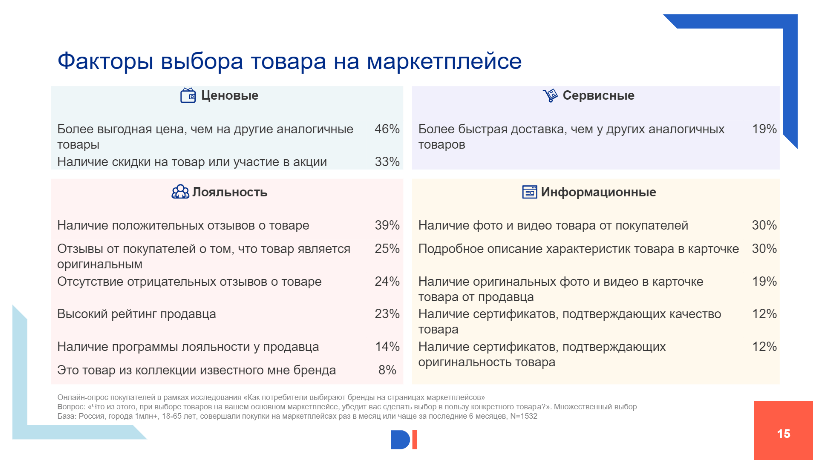 Согласно данным исследования Data Insight и Мегамаркета, почти половина опрошенных пользователей маркетплейсов (46%) не только приобретает товары уже известных им марок, но и исследует новые бренды.
