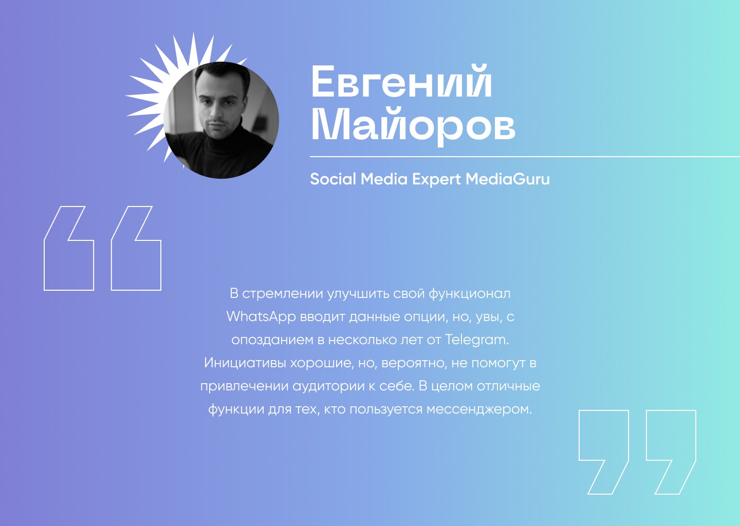 Евгений Майоров, Social Media Expert MediaGuru поделился мнением:
