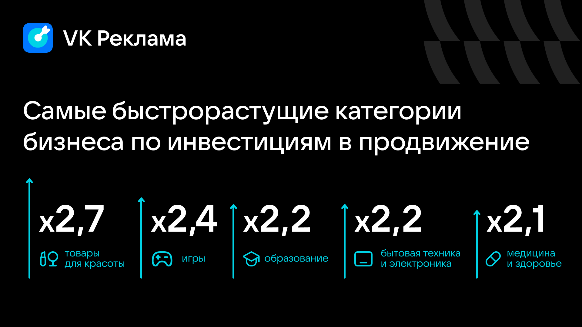 - лидером по росту инвестиций стал beauty-сегмент (+170%), в мобильной рекламе лидируют видеоплееры с ростом бюджетов в 9 раз;