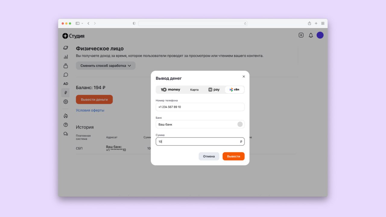 6) В Дзене теперь доступен вывод заработанных средств через СБП.