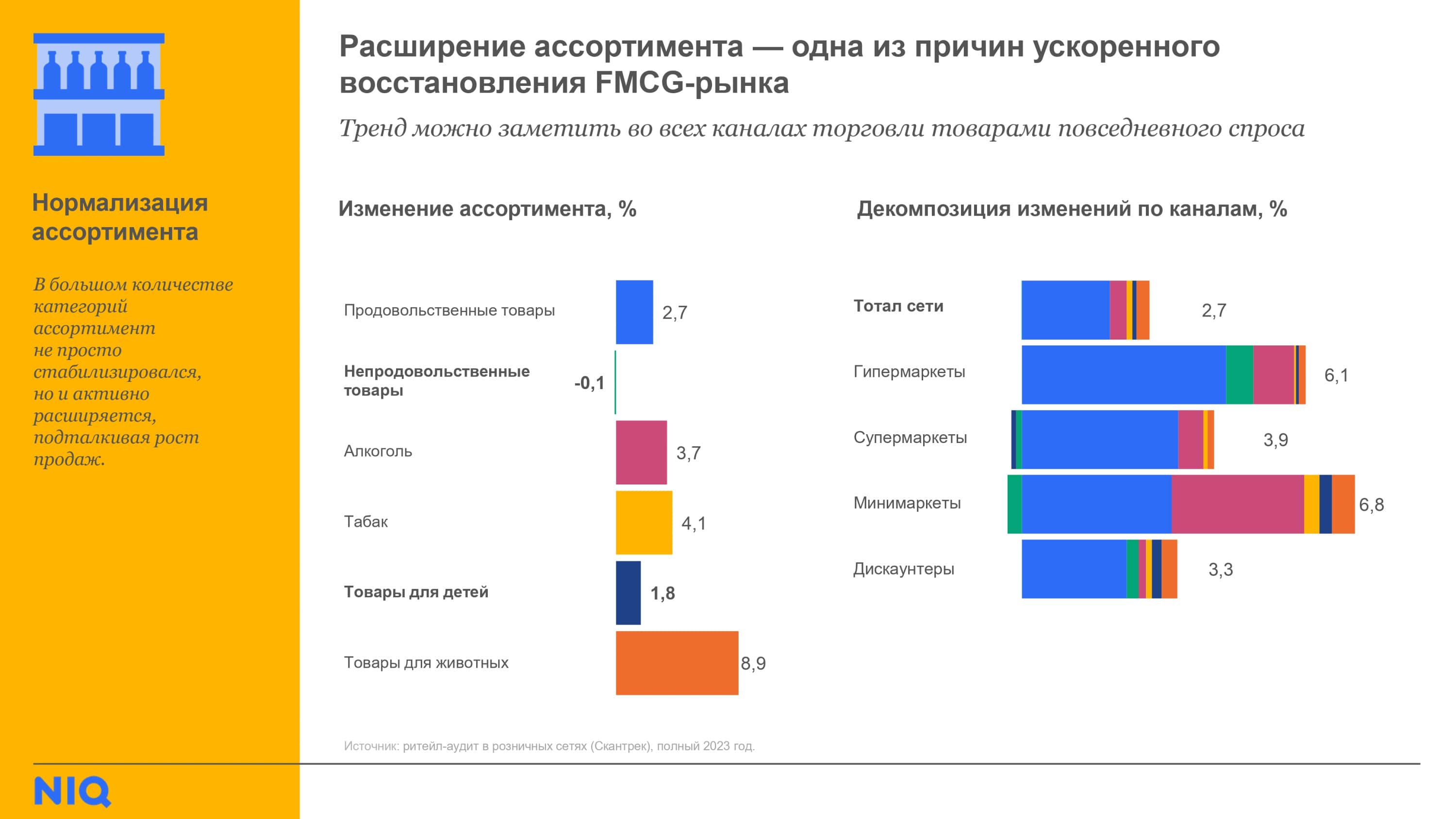 5) NielsenIQ: по итогам 2023 года рынок FMCG восстановился после прошлогоднего снижения.