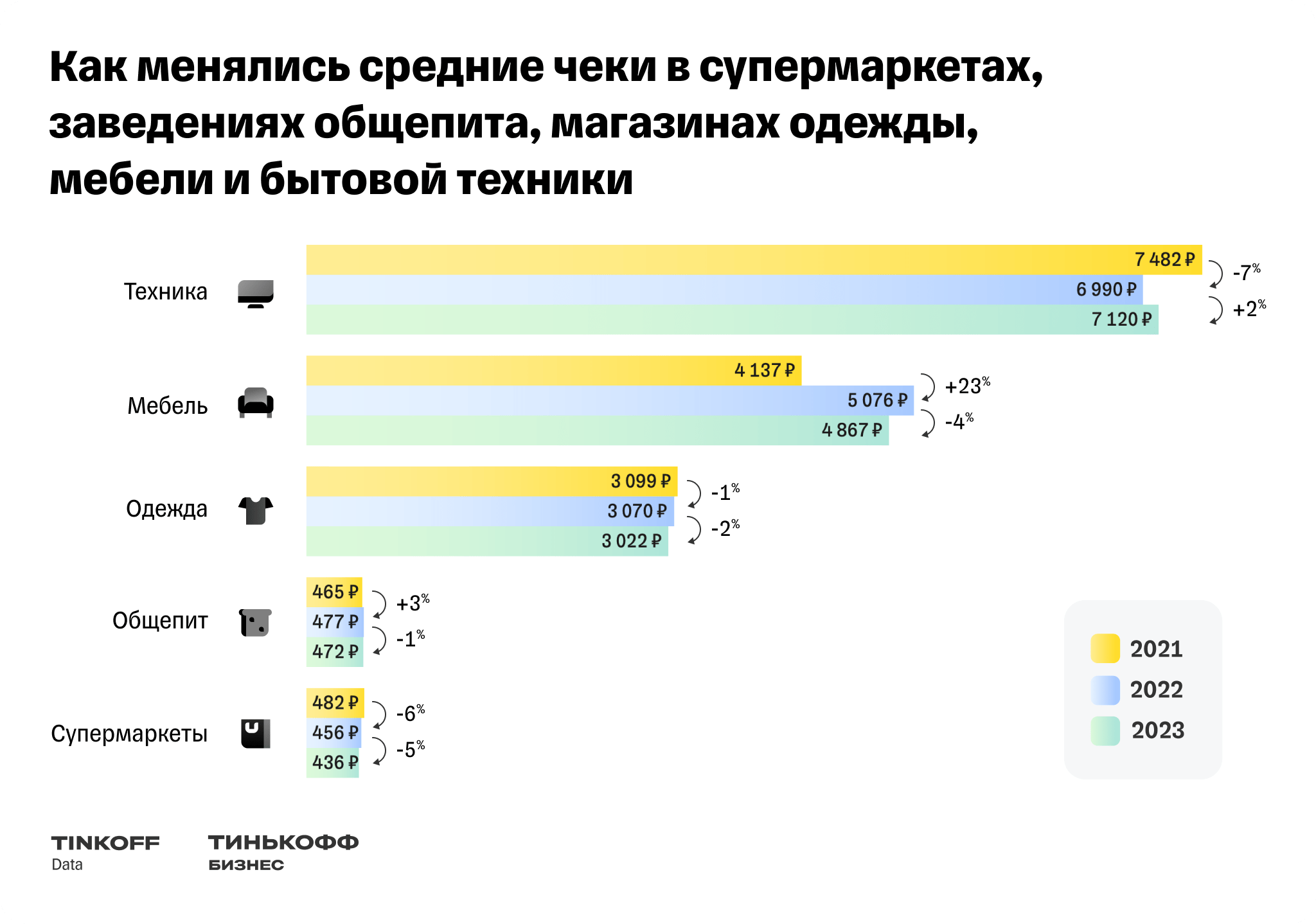 7) Исследование Тинькофф Бизнеса: половина ежемесячных расходов россиян в офлайне приходится на супермаркеты и общепит.