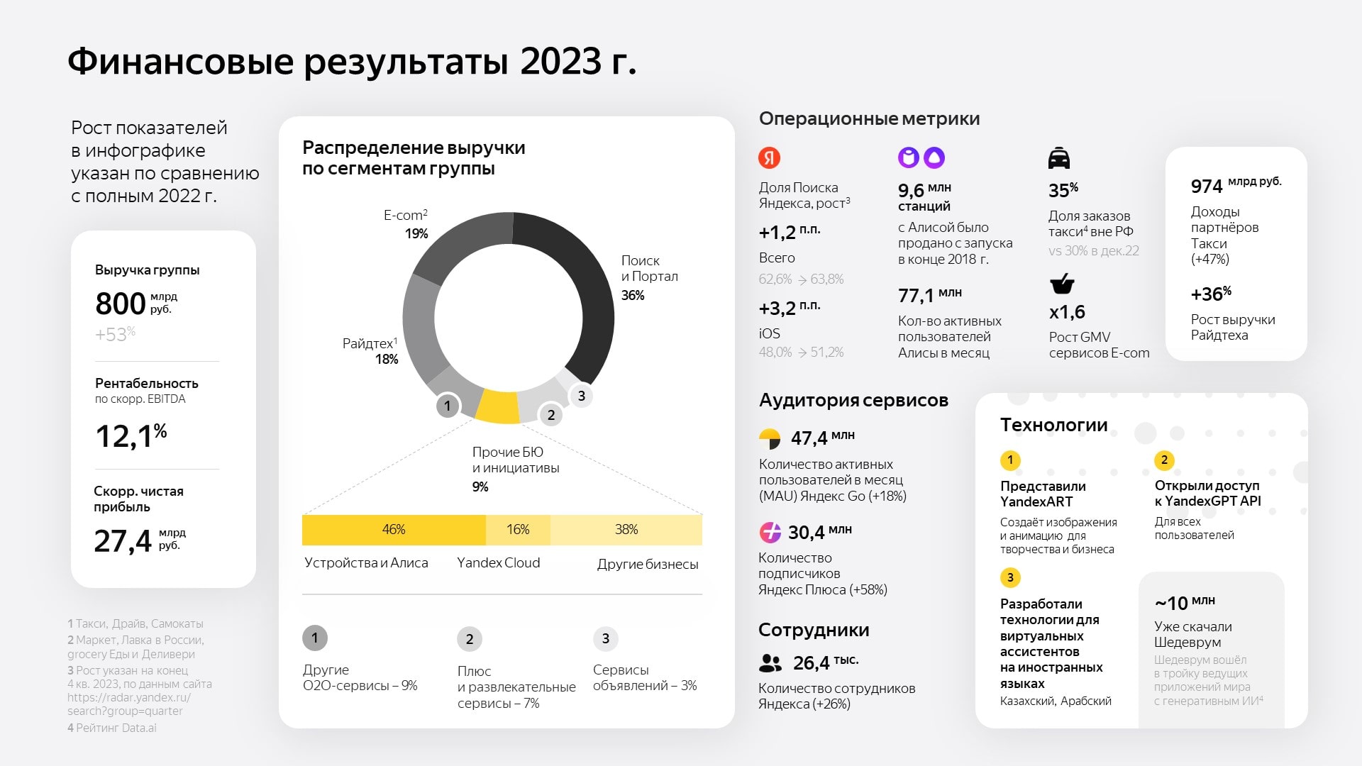 4) Яндекс объявляет финансовые результаты за IV квартал 2023 года и 2023 год.
