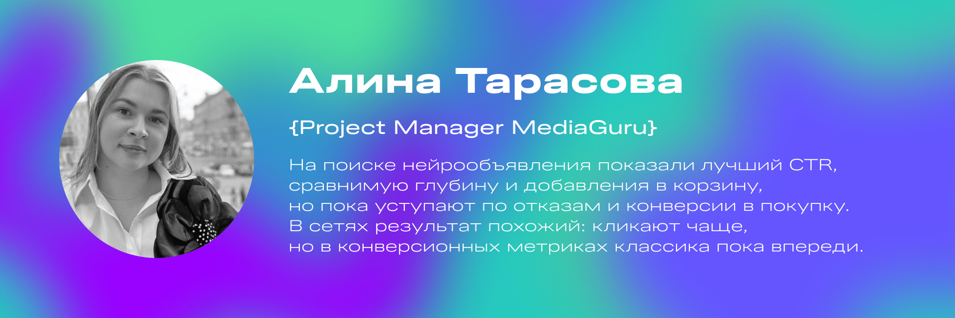 Алина Тарасова, Project Manager MediaGuru, поделилась впечатлениями от тестирования Yandex Neuro Ads: