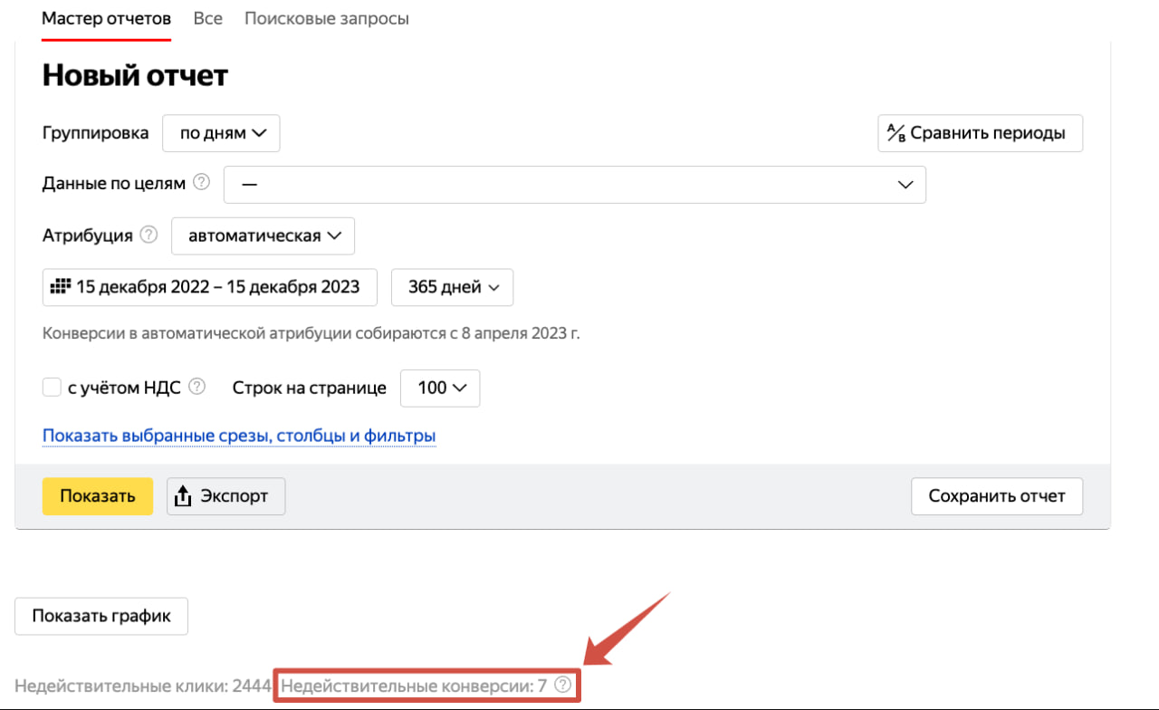 В Мастере отчетов, кроме недействительных кликов, теперь есть недействительные конверсии. Нововведение сделает более прозрачным и понятным статистику и работу антифрод-системы Яндекса.