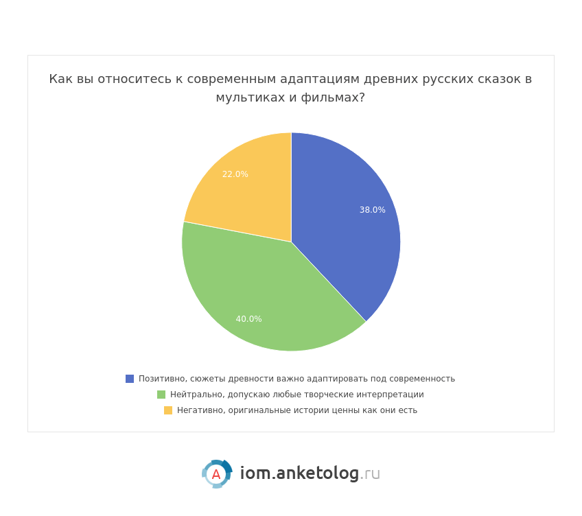 Сказки были любимым литературным произведением большинства россиян (77%) в детстве. В топ-5 любимых русских сказок россиян вошли «Морозко» (17%), «Колобок» (10%), «По щучьему велению» (10%), «Каша из топора» (7%) и «Царевна-лягушка» (7%).