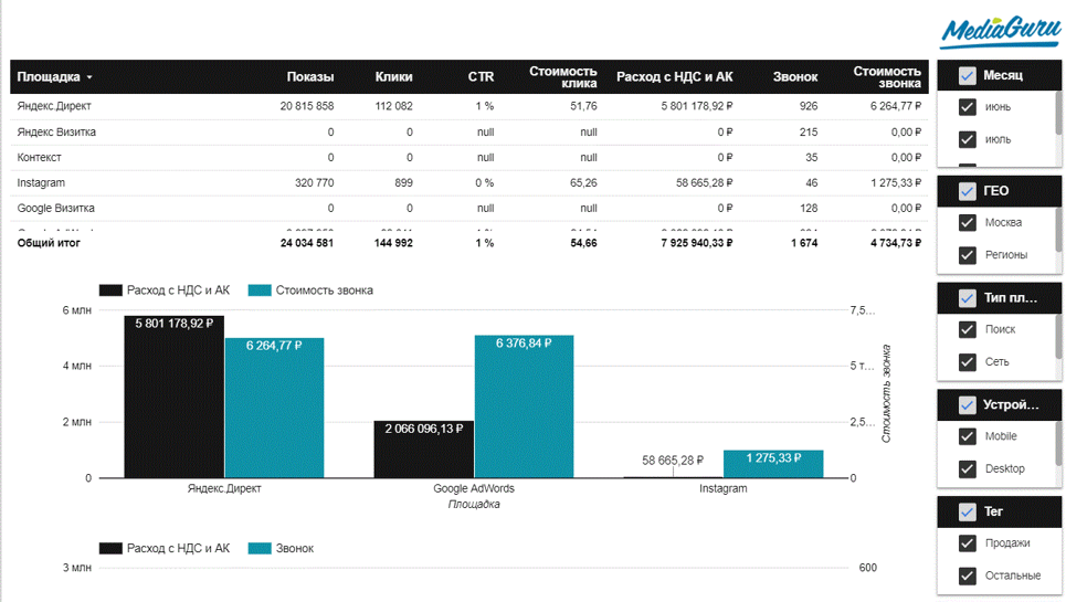 - Если можно добавить больше эффективного трафика в Google за счет низкоэффективного в Яндексе, нужно уже сейчас изменить структуру бюджета по площадкам.