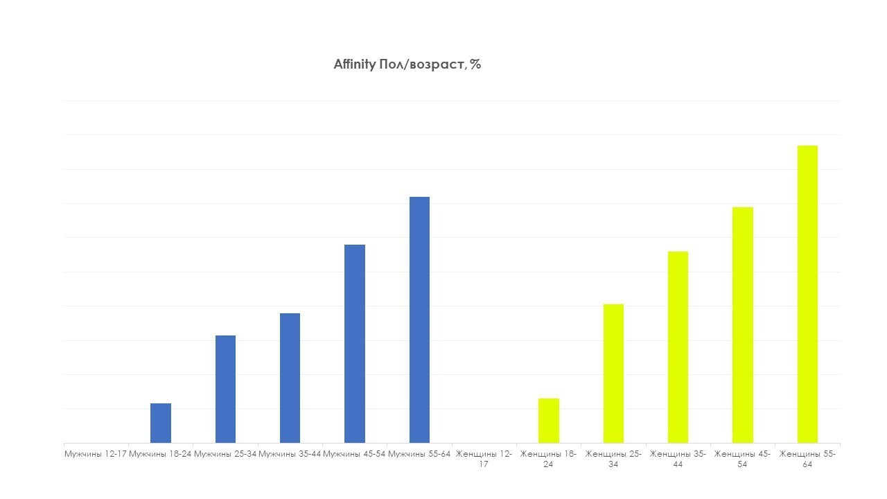Если говорить о возрасте, то среди покупателей больше женщин и мужчин 55-64 лет, меньше — женщин и мужчин 18-24 лет.