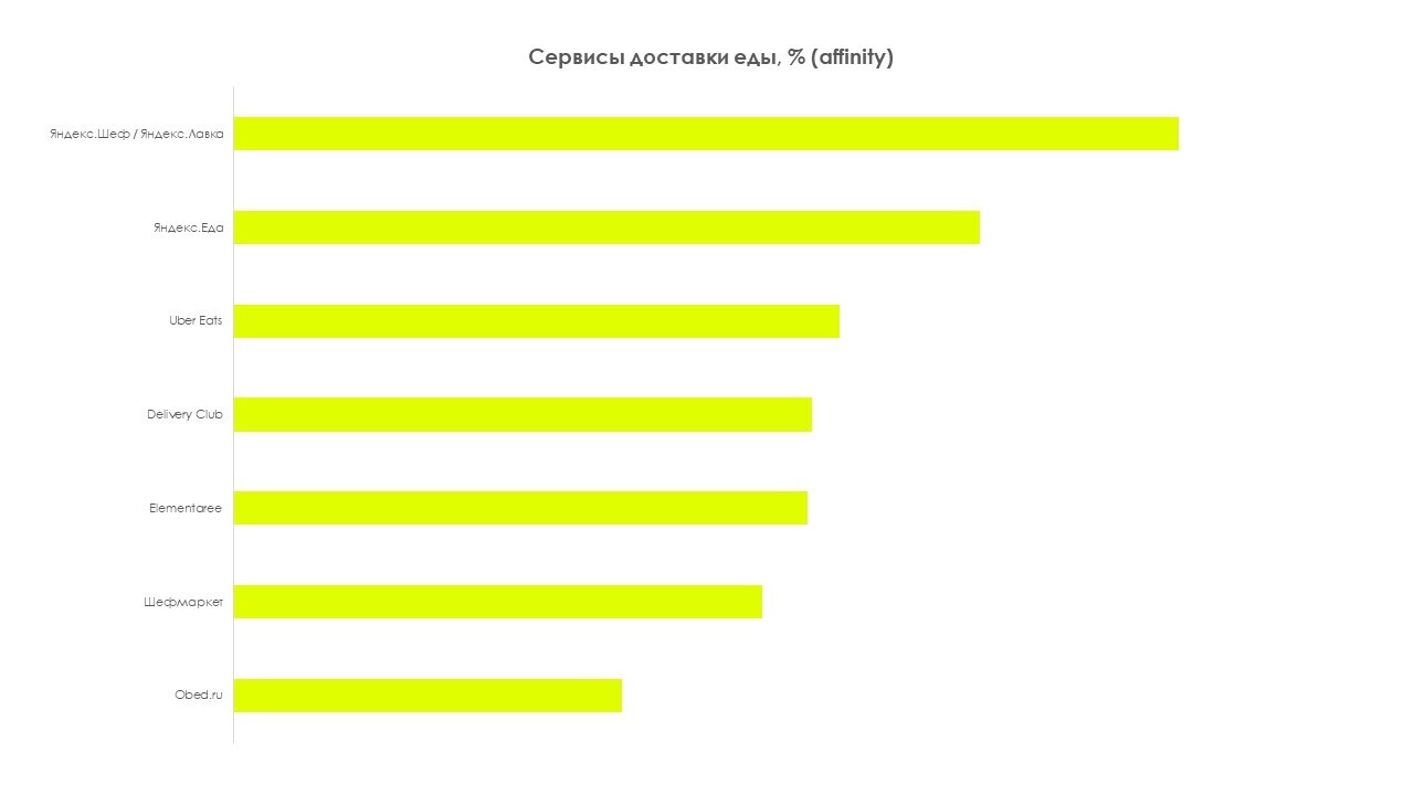 Для доставки еды в приоритете сервисы Яндекса: Яндекс.Шеф/Яндекс.Лавка, Яндекс.Еда.