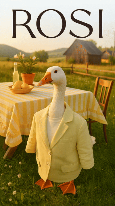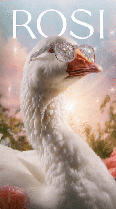 Мы решили провести эксперимент: создать серию креативов с помощью нейросетей. Главным героем которых стал гусь — символ летней коллекции ROSI 2025, персонаж в стиле fashion-editorial: немного абсурдный, харизматичный и запоминающийся, контрастирующий с типичной эстетикой fashion-рекламы.