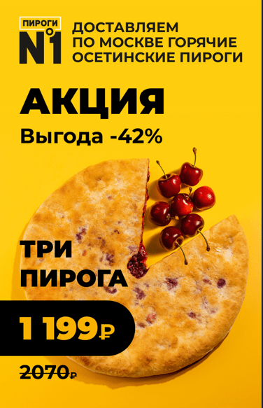 «Пироги№1» — лидер на рынке доставки осетинских пирогов в Москве. Предлагает пироги по традиционным и уникальным рецептам с быстрой доставкой до двери.