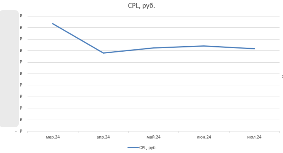 К концу июля 2024 года мы заметно снизили стоимость лида по сравнению с результатами в рекламном кабинете клиента. Трафик приходил наиболее конверсионный. На момент аудита кабинета стоимость лида была на 39% выше.