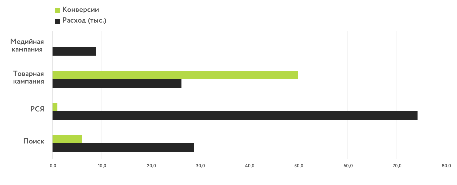 3) Высокая стоимость конверсии на поиске.