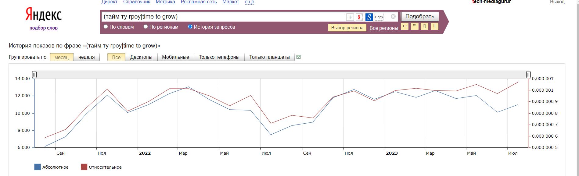 После запуска конверсионных типов кампаний мы приступили к следующей задаче: привлечение новых клиентов в интернет-магазин. Проанализировав трафик конкурентов, мы увидели потенциал в небрендовым трафике на поиске.
