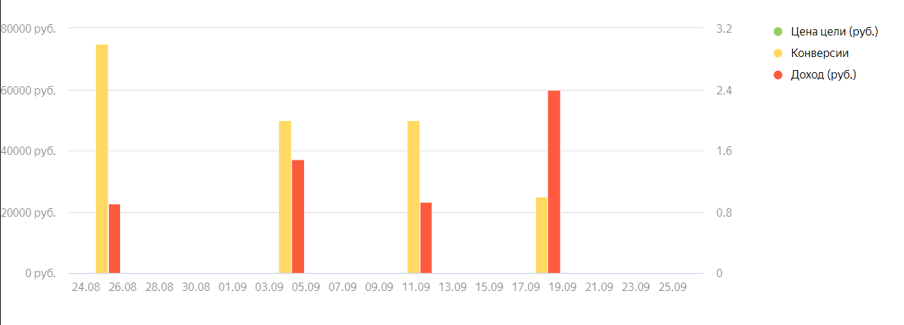| Период | Цена цели | Коэфф. конверсии | Кол-во конверсий | ДРР | ||||||
