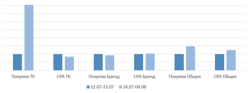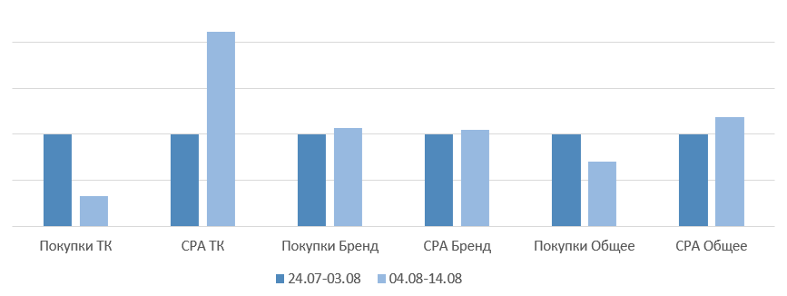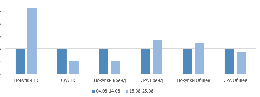 Бренд: уменьшение покупок на 8%, повышение СРА на 4%.