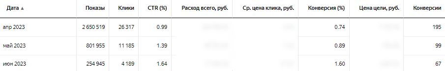 Последующий за корректировками месяц май показал, что при удержании СРА в целевом значении Mascótte количество покупок не увеличивается, несмотря на оптимизацию по цели Покупка, и в июне было принято решение объединить кампании по ГЕО, что также не привело к положительной динамике:
