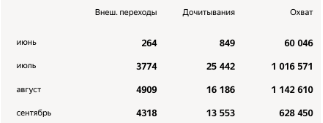За период с мая по сентябрь 2021 года мы получили почти 150 млн показов и 830 тыс. переходов на сайты клиента и его партнеров.