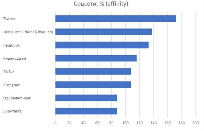 - из соцсетей наиболее привлекательные для ЦА — Twitter и LiveJournal;