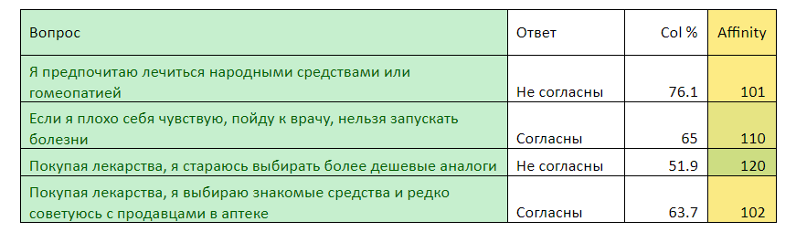 Любопытно, что большая часть аудитории, покупая лекарства, старается выбирать более дешевые аналоги. В остальном больших удивлений не возникло.