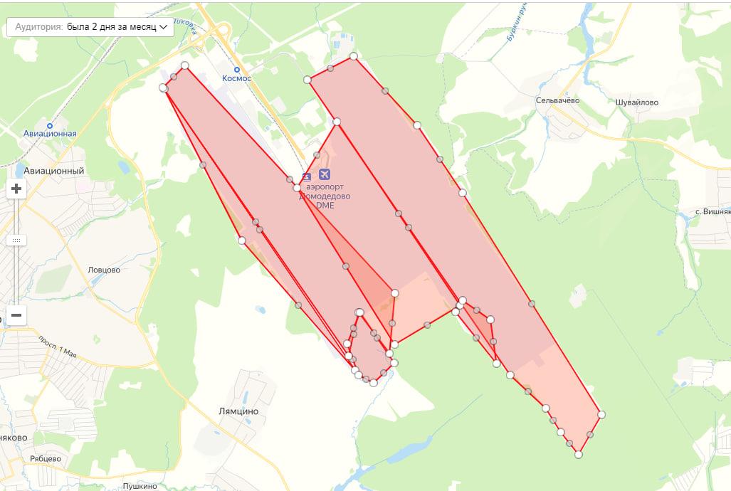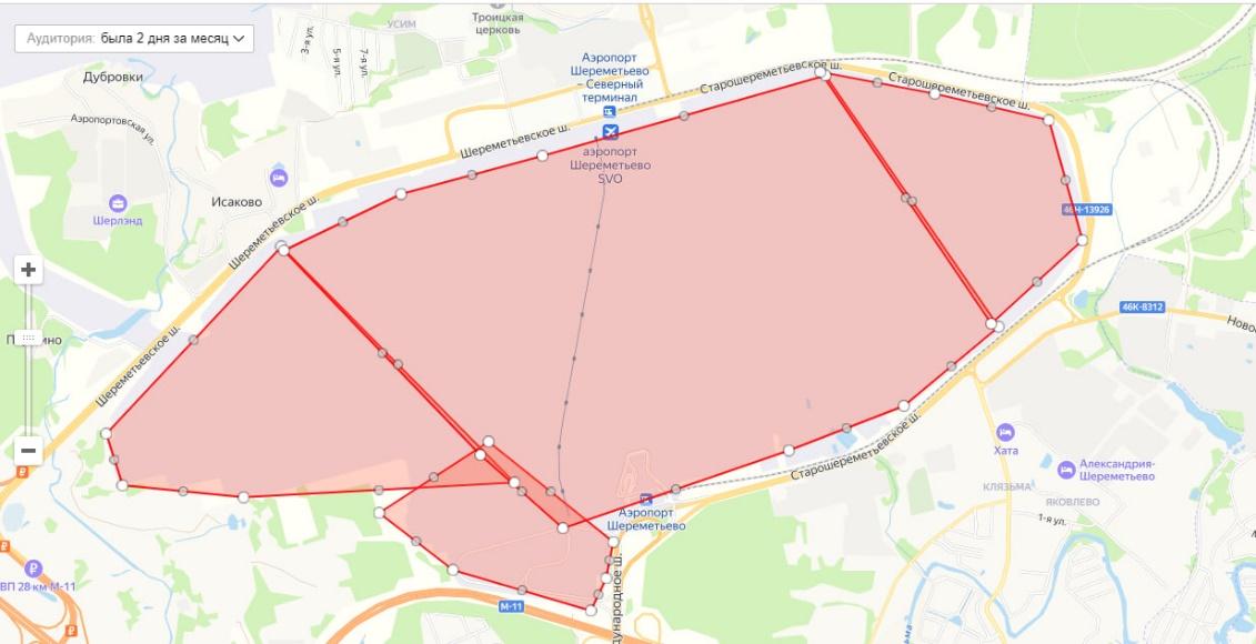 Посетителей аэропортов прорабатывали через полигоны, чтобы аккуратно выбрать именно места аэропортов и не «зацепить» проезжающих людей, а показываться только на тех, кто путешествует: