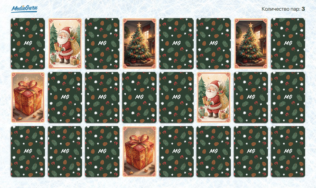 В преддверии Нового года мы запустили праздничную игру «Мемо» с полезными подарками для маркетологов.