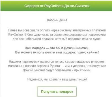 Например, мы приобрели радионяню в одном магазине. Пока ее выбирали, посетили еще 3 магазина, в том числе Дочки-Сыночки. В нем ничего не купили и не оставляли никаких данных. Но, несмотря на это, нам приходит подарочек. Такими действиями рекламодатель подстегивает потенциального клиента на покупку.
