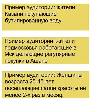 Критериев для описания аудитории намного больше, в списке указаны основные.