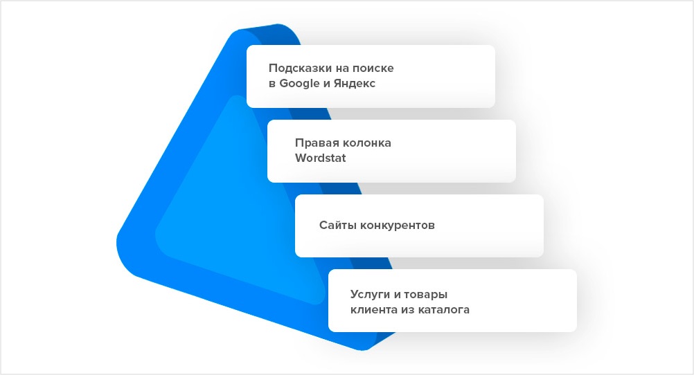 Сбор начинается с базисов или масок. Это группа запросов, объединенных одной темой, скажем, «заборы». В «заборы» входят:
