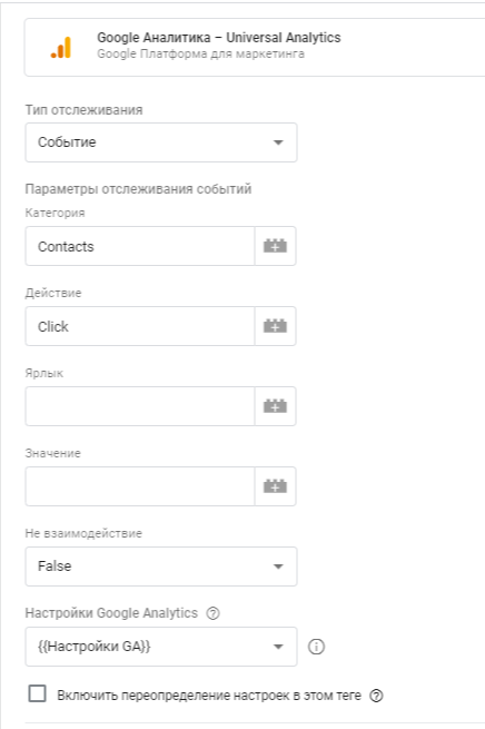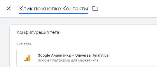 Шаг 6: Перейдите к своей учетной записи GTM и создайте новый тег типа Universal Analytics. Назовите тег, например: «Клик по кнопке Контакты»‎.